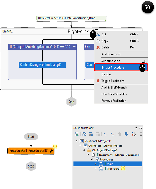 Extract the selected nodes to a new procedure